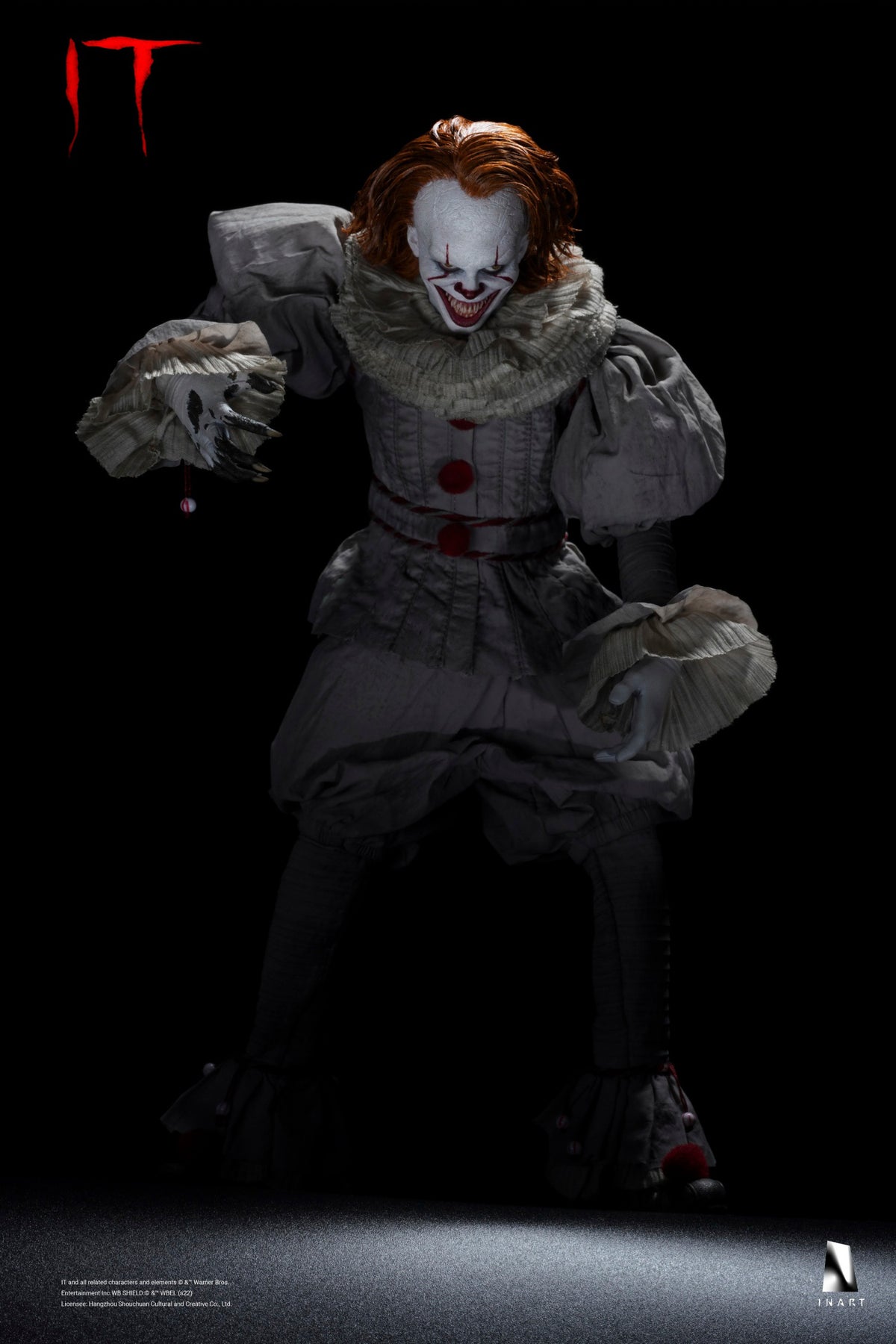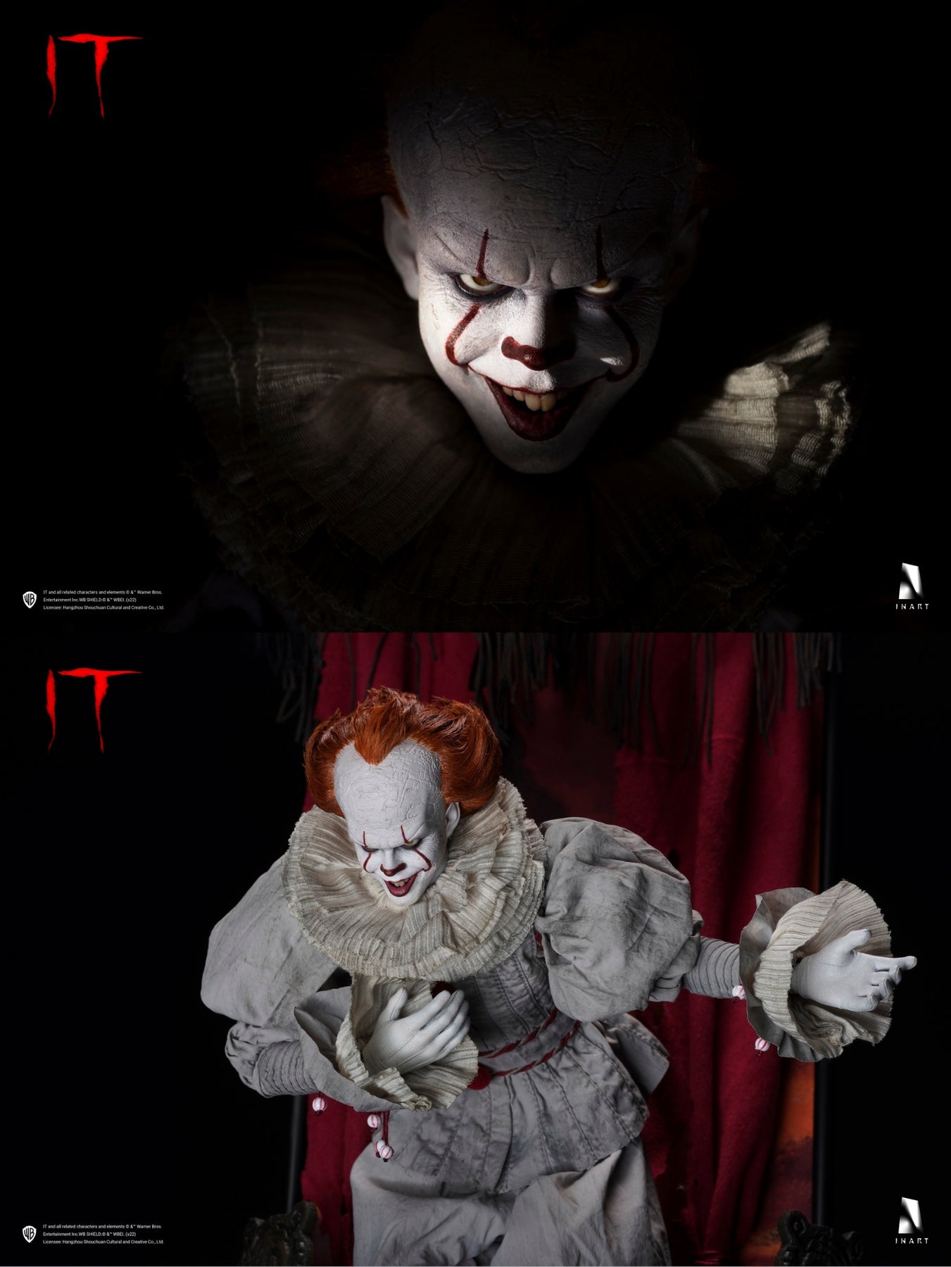 Following the release of INART 1/6 Gandalf the Grey collectible figure, we are excited to introduce a new addition to our 1/6 scale figure collection, Pennywise (IT). This IT collectable showcases the clown on a theatre stage. Crafted to look like he is perched upon a shabby wooden stage with red velvet curtains hanging behind it, Pennywise stares forward menacingly at it’s prey.
